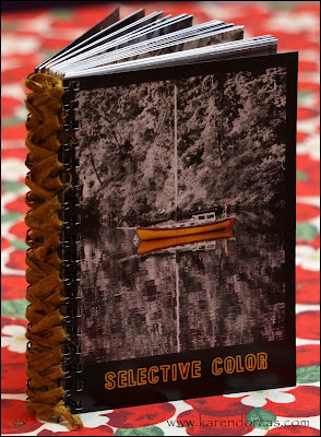 Received my "Selective Color" collaborative book in the mail yesterday when I returned home from work... what an inspiration! Today I "especially" wish to share the wonderfully creative spine binding Catherine chose to weave with sari ribbon.